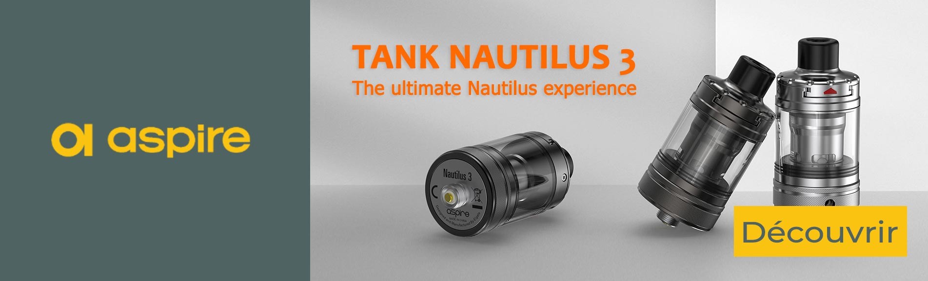 Aspire présente le Clearomiseur Nautilus 3 Tank par Aspire. Connecteur 510, Diamètre 24 mm, drip-tip 510, inhalation directe ou indirecte, remplissage e-liquide par le haut, bottom aiflow réglable, réservoir 4ml. Drip-tip et Tube pyrex de remplacement 4ml fournis. Livré avec 1 résistance Nautilus BVC 1.8 Ohm et résistance Nautilus 2S 0.7 Ohm préinstallée. Le clearomiseur Aspirecig Nautilus 3 Tank est fabriqué en Chine.